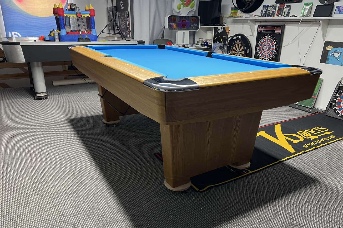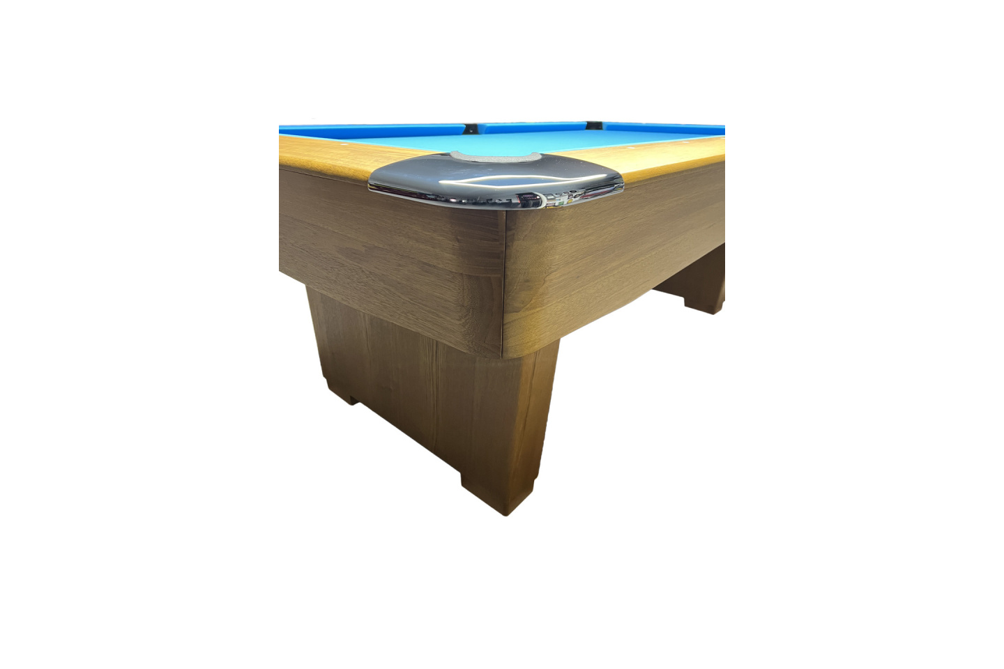 Stół bilardowy marki Europool 45 to idealny stół dla szukających dobrej jakości w korzystnej cenie. Idealnie sprawdzi się do użytku w domowym zaciszu. Piękny kolor złotego orzecha zadowoli każdego wielbiciela łączenia nowoczesności z ponadczasową elegancją. Stół został wyposażony w 3-częściową płytę kamienną z łupka włoskiego.