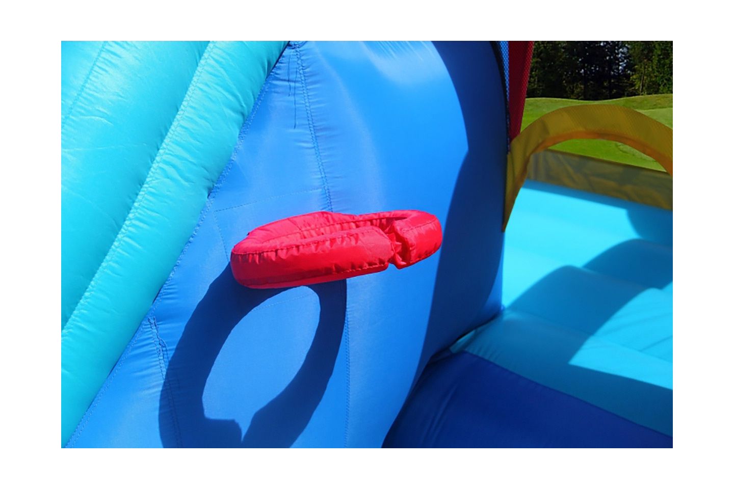 - Bezpieczeństwo: Wykonany z wytrzymałego, trójwarstwowego PVC, spełnia międzynarodowe standardy bezpieczeństwa (EN71 dla Europy, ASTM dla Ameryki Północnej).