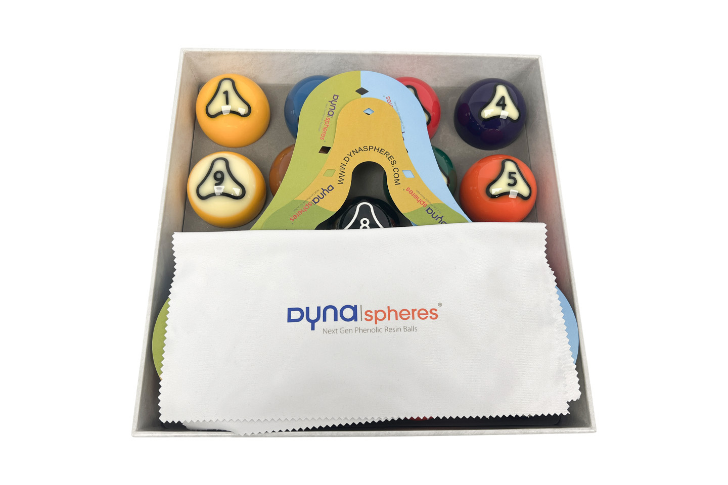 Dynaspheres to belgijska marka, która od 2010 roku specjalizuje się w produkcji bil bilardowych z żywicy fenolowej. Proces produkcji bil Dynaspheres Palladium TV obejmuje 49 etapów i trwa 23 dni, podczas których przeprowadzane są 54 testy jakościowe, w tym kontrola kulistości, koncentryczności, twardości, gęstości oraz wykończenia powierzchni. Dzięki temu bile te spełniają najwyższe standardy jakości, zapewniając graczom precyzyjne i stabilne uderzenia.