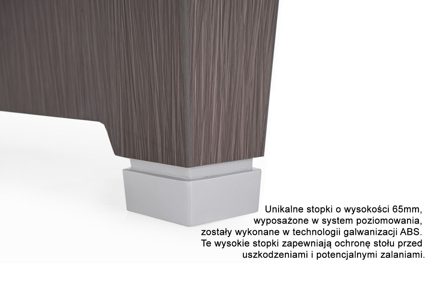 - Systemy: Poziomowanie na płycie i stopkach oraz system spływowy kierujący bile do jednego punktu