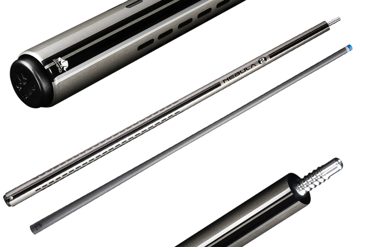 Rhino NEBULA 2 – Charcoal Gray to kij bilardowy z kolekcji inspirowanej pięknem kosmicznych mgławic. Stonowana szarość w połączeniu z nowoczesnym designem i sportową gumową owijką nadaje mu elegancki, a zarazem dynamiczny charakter. To doskonały wybór dla graczy, którzy poszukują połączenia precyzji, trwałości i stylu.