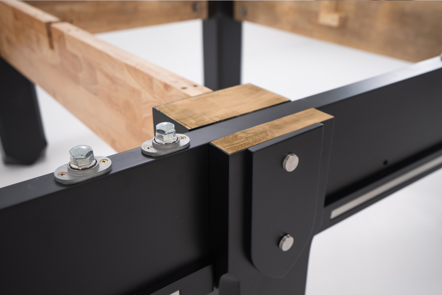 Bandy zewnętrzne zaopatrzone są w stalowe płytki o grubości 10 mm, łączone złotą śrubą z płytą, dla perfekcyjnego dopasowania. Gwarantuje to najwyższą jakość, dynamikę, komfort oraz akustykę gry.