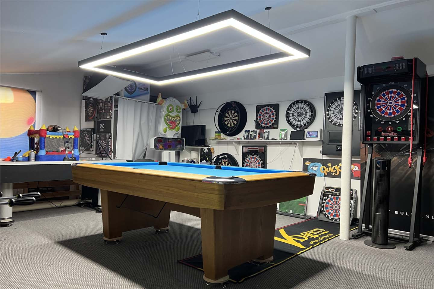 Stylowa, nowoczesna lampa prostokątna przeznaczona do oświetlenia stołów bilardowych o długości 9 stóp. Dzięki zastosowaniu specjalnej folii refleksyjnej, lampa zapewnia optymalne doświetlenie powierzchni gry, eliminując cienie i poprawiając widoczność. Wysokiej jakości metalowa konstrukcja gwarantuje trwałość i stabilność.