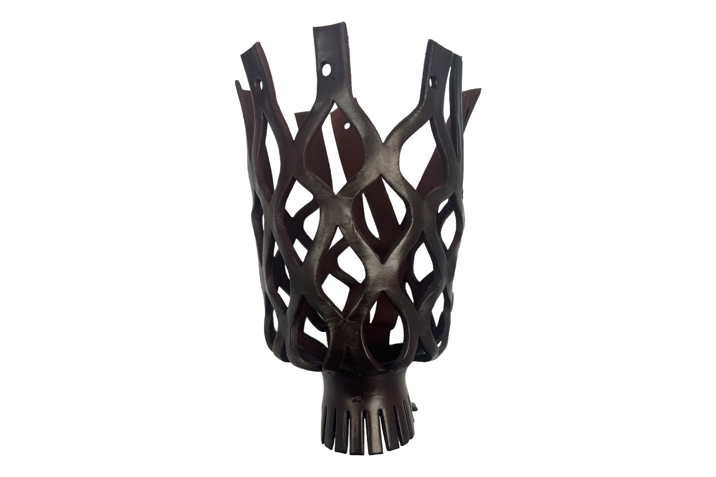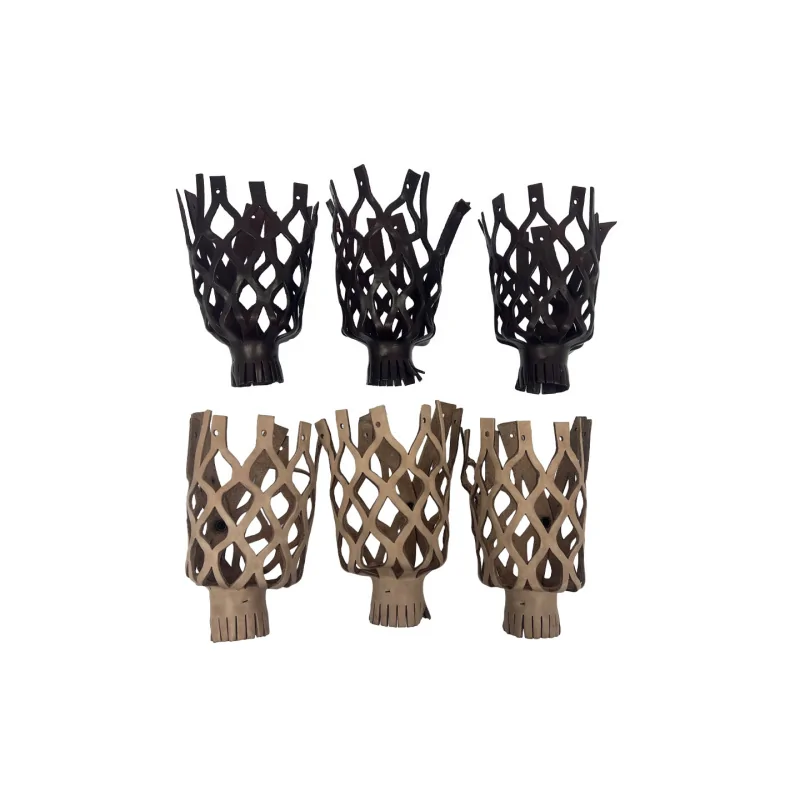 Koszyki skórzane z ozdobnymi frędzlami i narożnikami – komplet 6 szt.