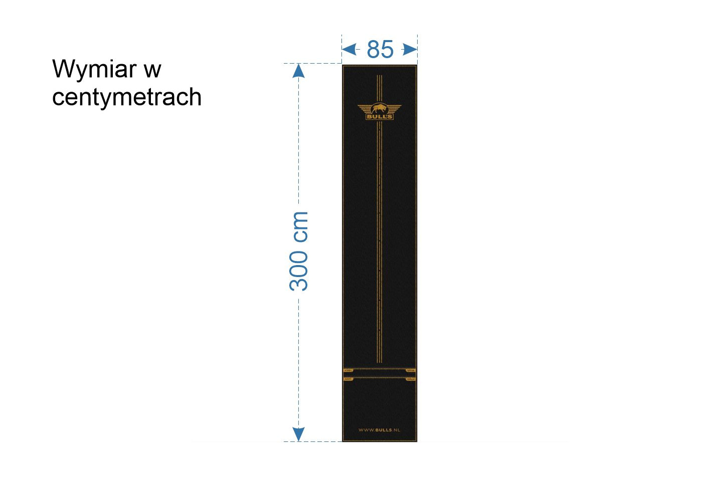 Mata o wymiarach 300 × 85 cm posiada wbudowaną linię rzutu (oche), gwarantującą prawidłowy dystans i powtarzalność ułożenia, co czyni ją idealnym rozwiązaniem zarówno do gry domowej, klubowej, jak i turniejowej.