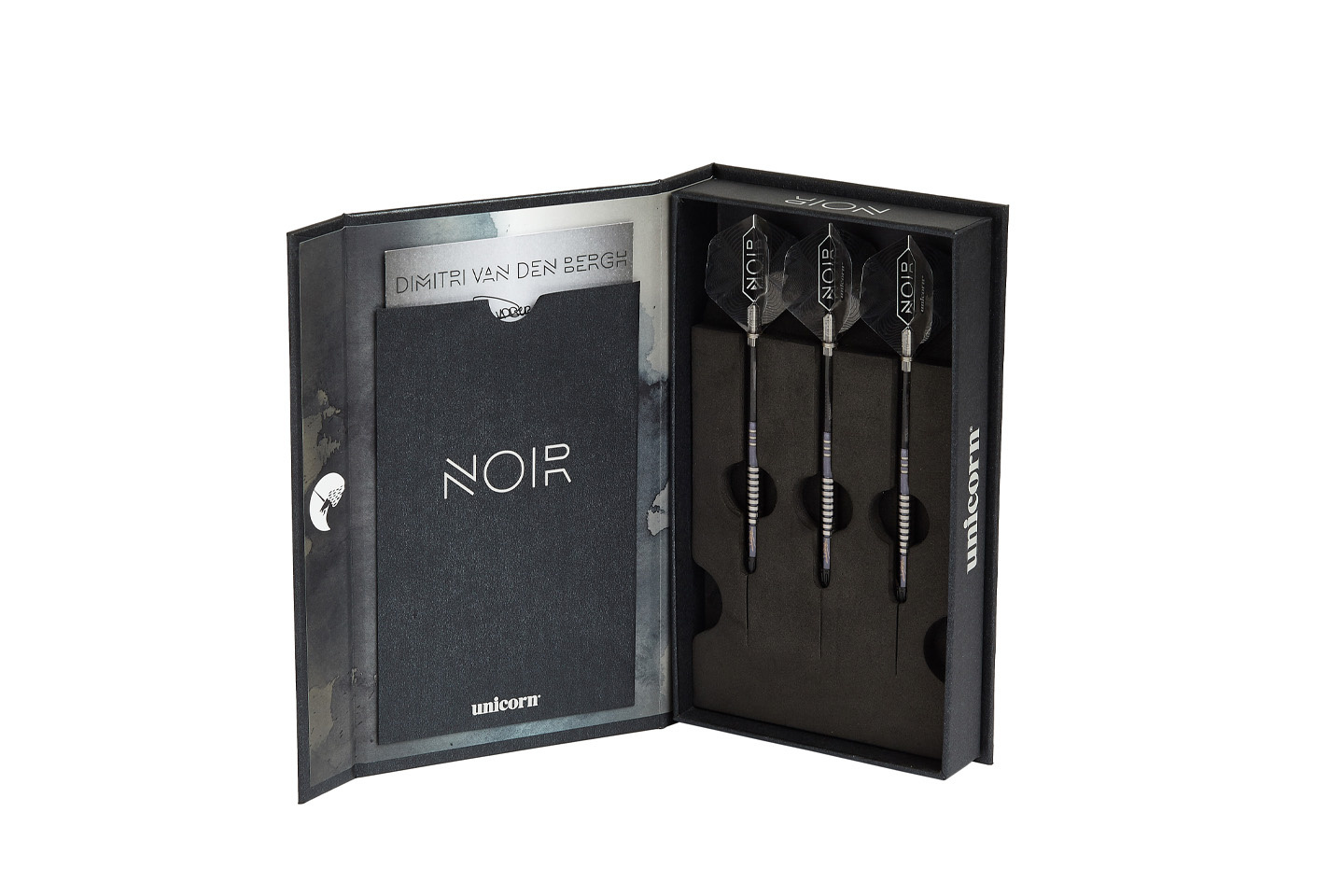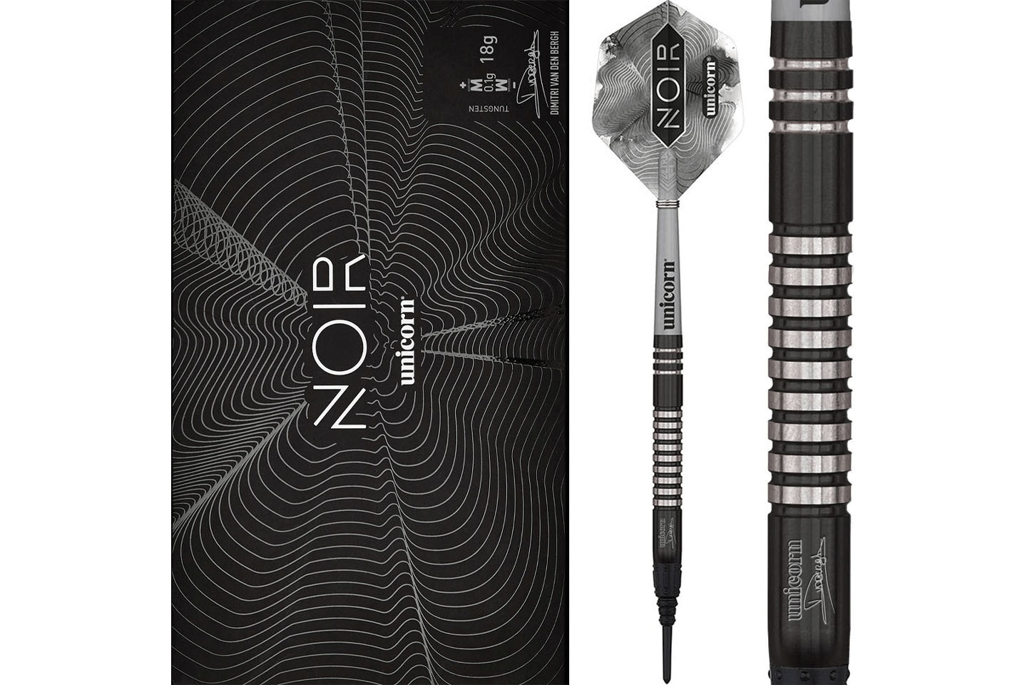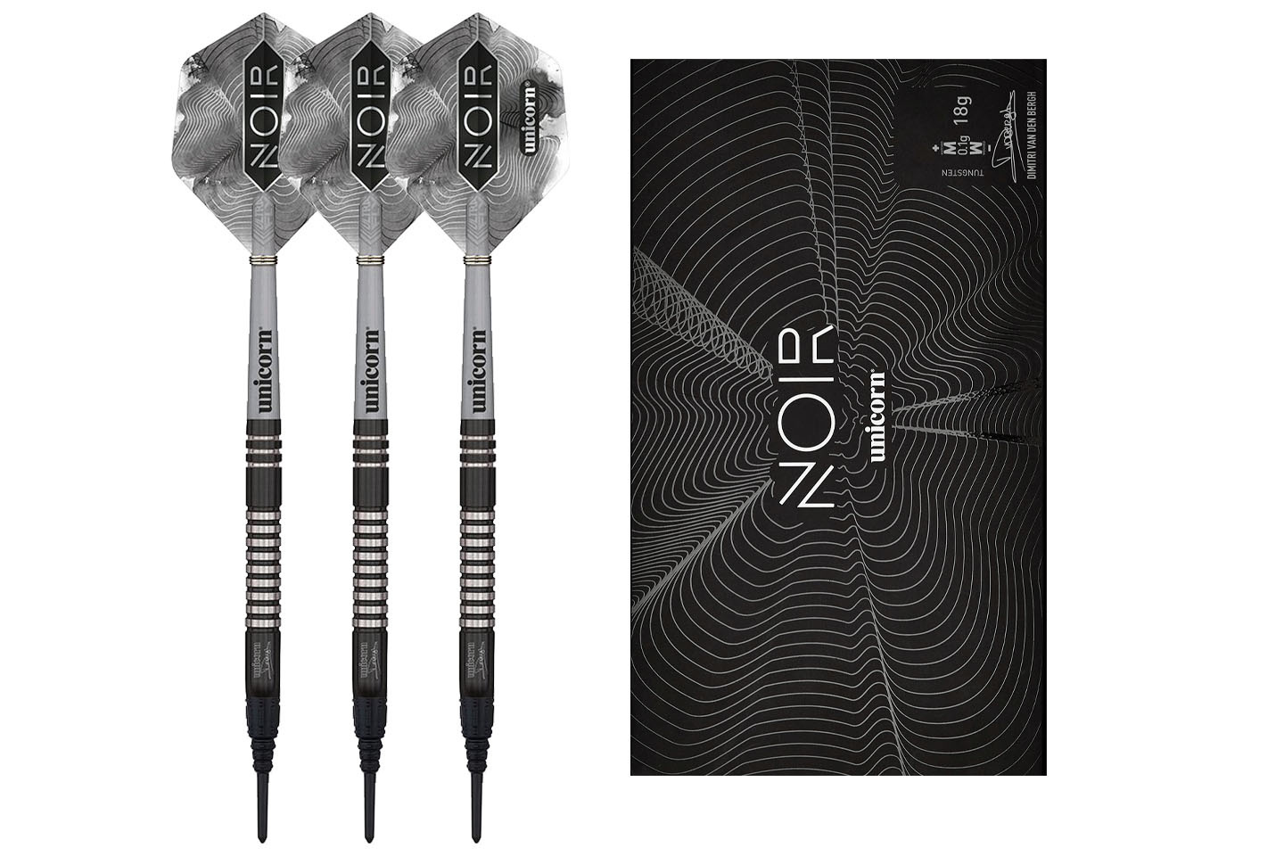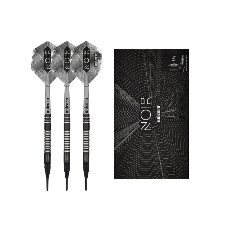 Zestaw Unicorn Noir Dimitri van den Bergh Soft Tip to propozycja dla graczy poszukujących połączenia profesjonalnego stylu z wysoką jakością wykonania. Lotki wykonane w 70% z wolframu charakteryzują się wytrzymałością, odpowiednim wyważeniem oraz eleganckim, czarnym wykończeniem z serii Noir, inspirowanym stylem gry belgijskiego zawodnika Dimitriego van den Bergha.