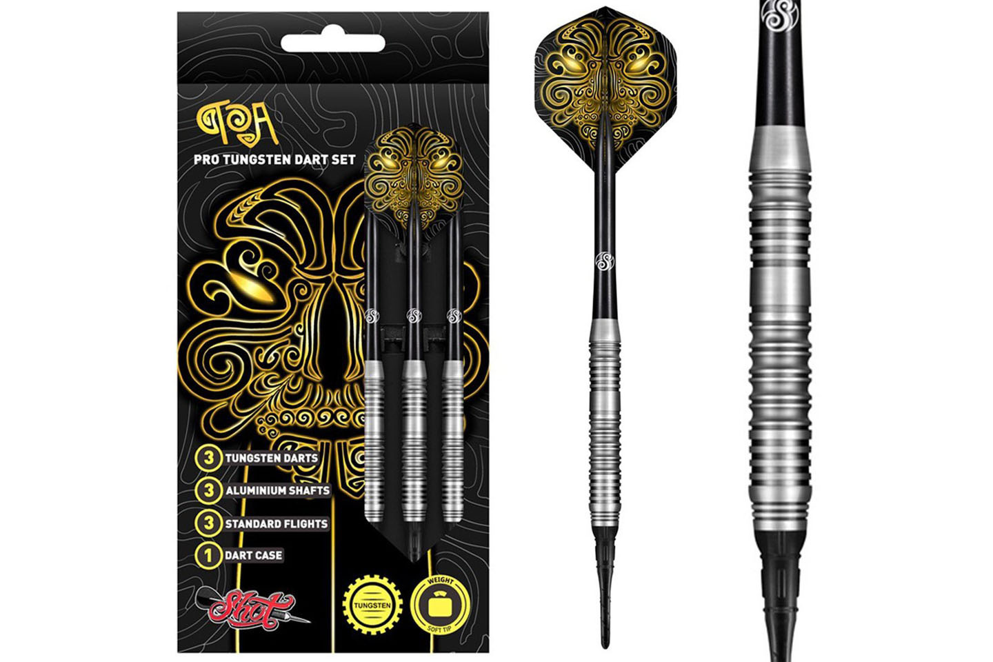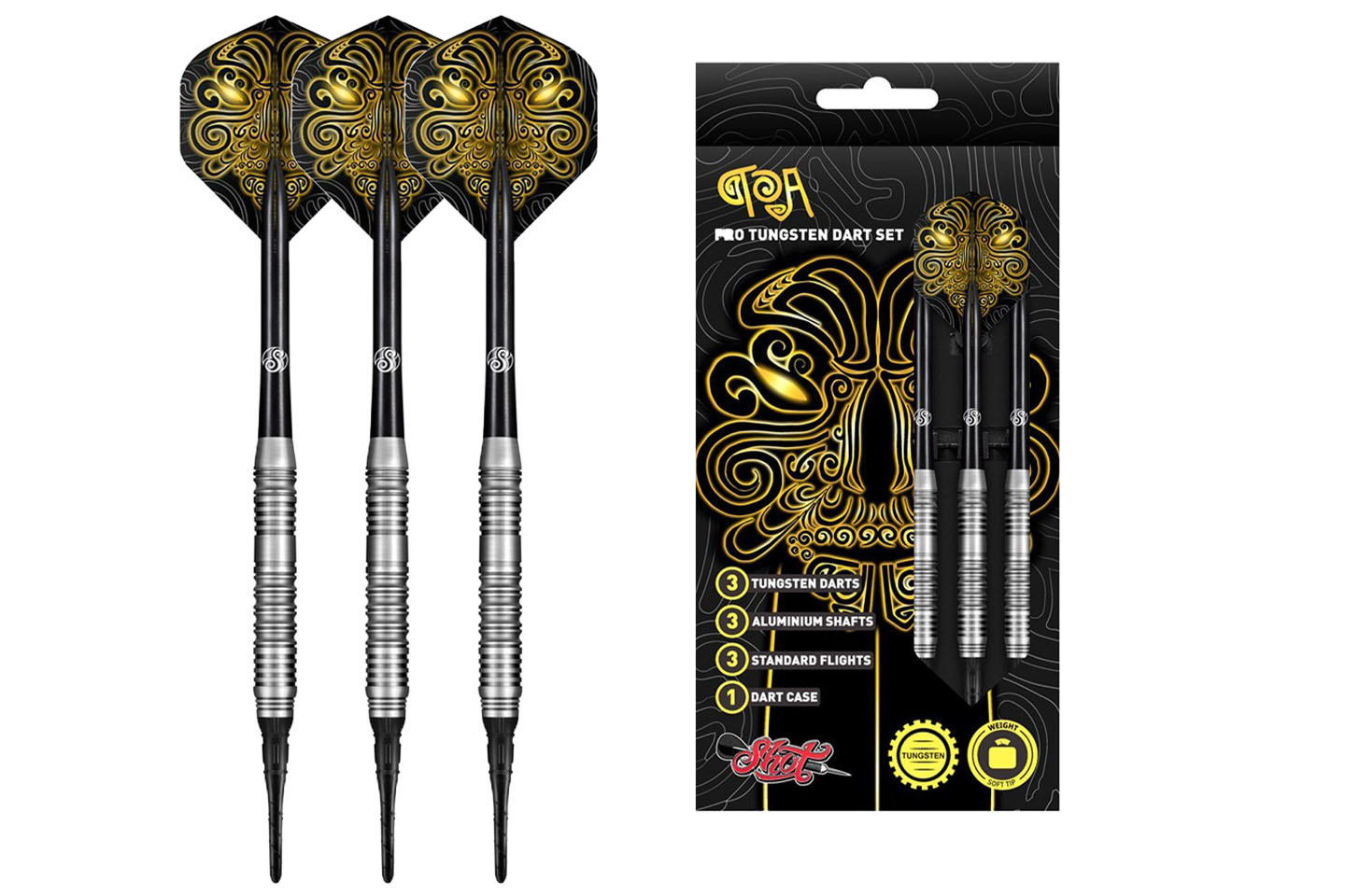 Shot Value Range Toa 70% to uniwersalny zestaw lotek soft tip, który łączy solidną konstrukcję z przystępną ceną i dobrymi parametrami gry. Wyprodukowane z 70 % wolframu, lotki oferują optymalną równowagę pomiędzy trwałością a smukłą sylwetką, co ułatwia tworzenie zwartego układu na tarczy i poprawia stabilność rzutu.