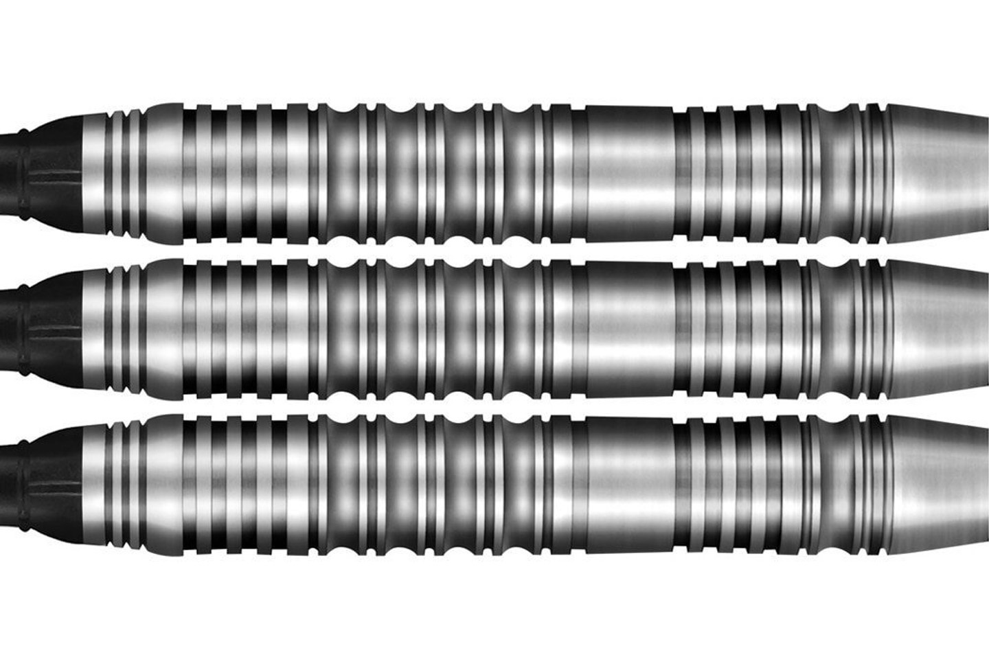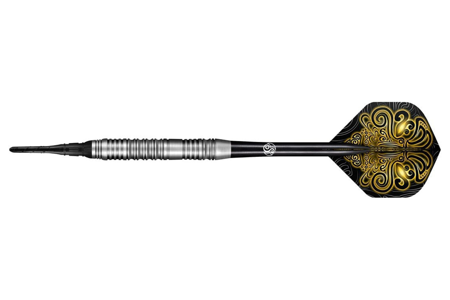 Barrel o prostym profilu posiada ringowane nacięcia, które zapewniają pewny chwyt i kontrolę nad lotką podczas całego rzutu. Całość uzupełnia standardowy zestaw piórek i shaftów, dzięki czemu lotki są gotowe do gry zaraz po wyjęciu z pudełka.