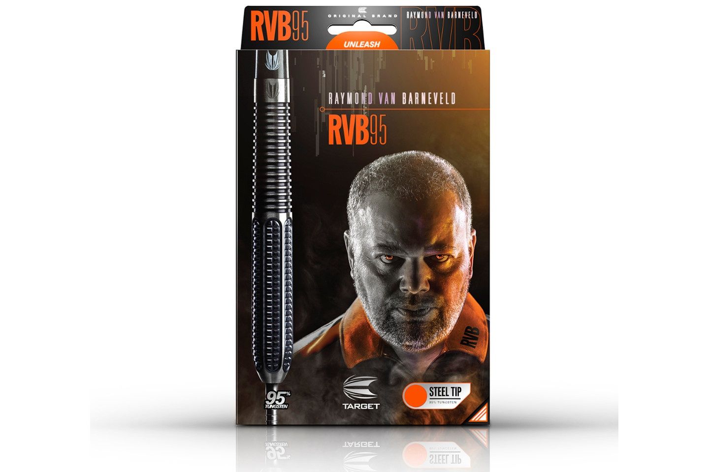 Target z przyjemnością prezentuje rzutki, którymi gra pięciokrotny Mistrz Świata Raymond Van Barenveld. Wykonane według jego dokładnej specyfikacji rzutki RVB zostały opracowane przez zespół projektantów, aby uzyskać doskonałe rezultaty dla unikalnego stylu rzucania. Precyzyjne połączenie dwóch cięć trapezoidalne z przodu oraz pionowe w tylnej części barela dają niezrównane czucie lotki, oraz odpowiedni grip, co przekłada się na powtarzalność rzutów, a co za tym idzie możliwość wyższego punktowania. Dodatkowo lotki zostały powlekane czarnym tytanem oraz groty Target Firepoints z wyjątkowo drobnymi nacięciami, które zapobiegają wypadaniu lotki z tarczy oraz dają możliwość dodatkowego gripu.