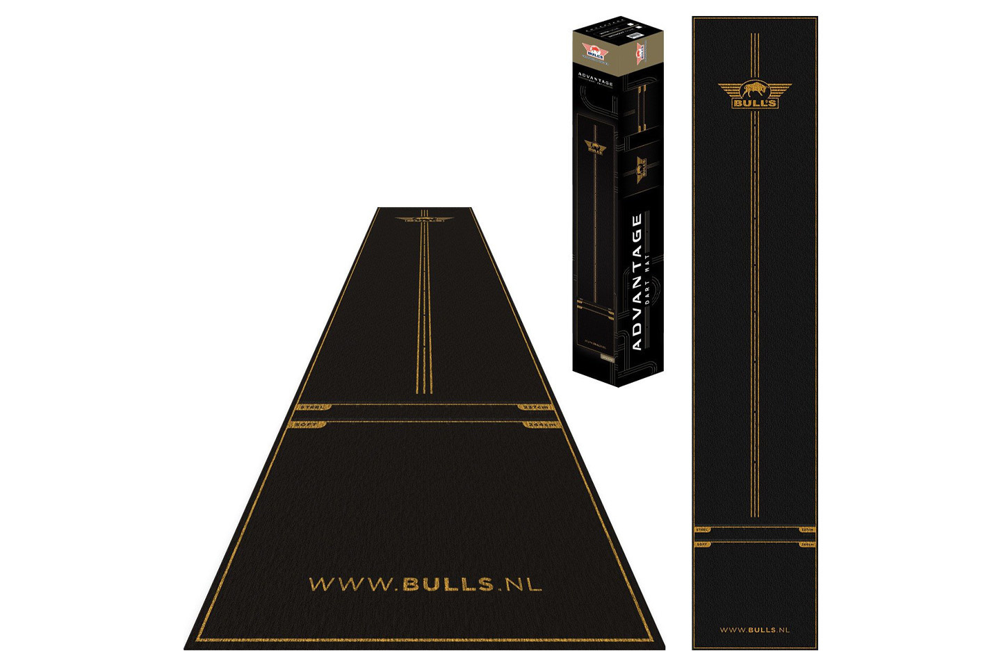 Bull's Carpet Advantage Dartmat to profesjonalna mata podłogowa, zaprojektowana z myślą o komforcie gry, precyzji oraz eleganckim wyglądzie strefy dartowej. Wykonana z trwałego materiału dywanowego, chroni podłogę przed uszkodzeniami, zapewniając jednocześnie stabilne i wygodne podłoże do stania. Wyróżnia się stylowym wzornictwem w kolorach czerni i złota, które podkreśla prestiżowy charakter każdego miejsca do gry.
