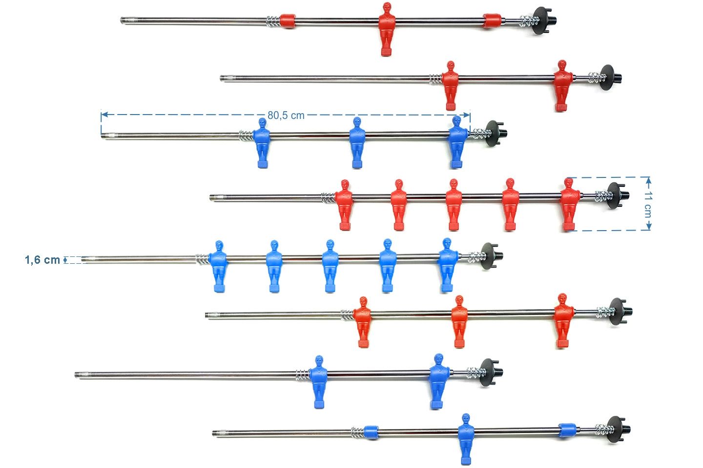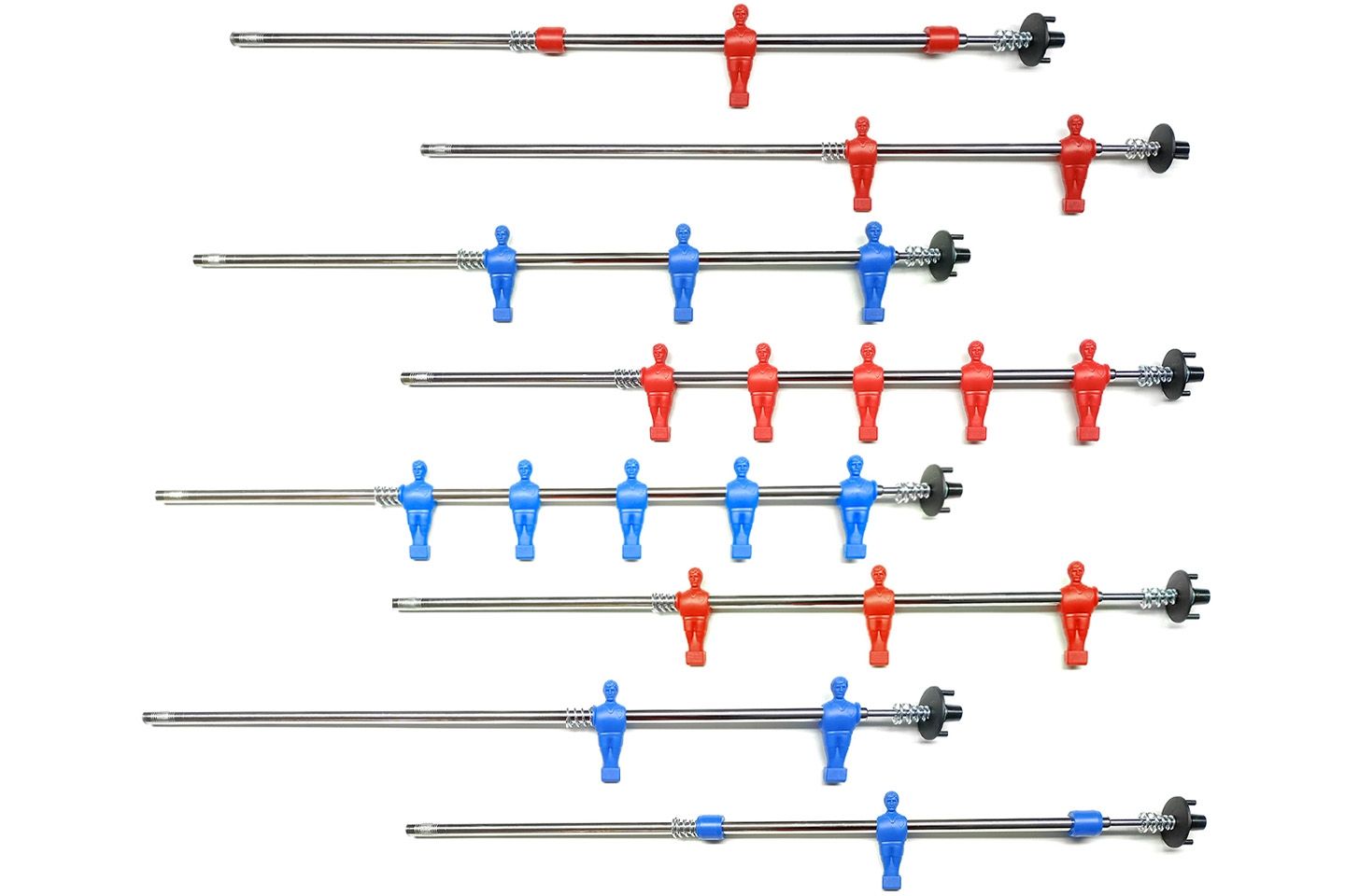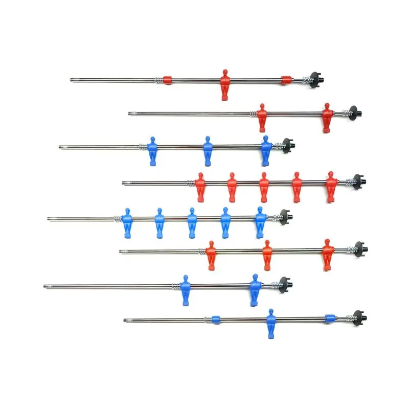 Prezentujemy komplet stalowych drążków teleskopowych, zestaw obejmuje również wewnętrzne drążki, przeznaczonych do stolików piłkarskich marki Garlando. Łączy w sobie trwałość i elegancję. Drążki o zewnętrznej średnicy 16 mm i grubości ścianki 2,2 mm, zostały pokryte chromem, gwarantującym skuteczną ochronę przed rdzą. Dodatkowym atutem jest estetyka - gracze ożywiają stół swoimi żywymi, kontrastującymi kolorami: czerwonym i niebieskim.