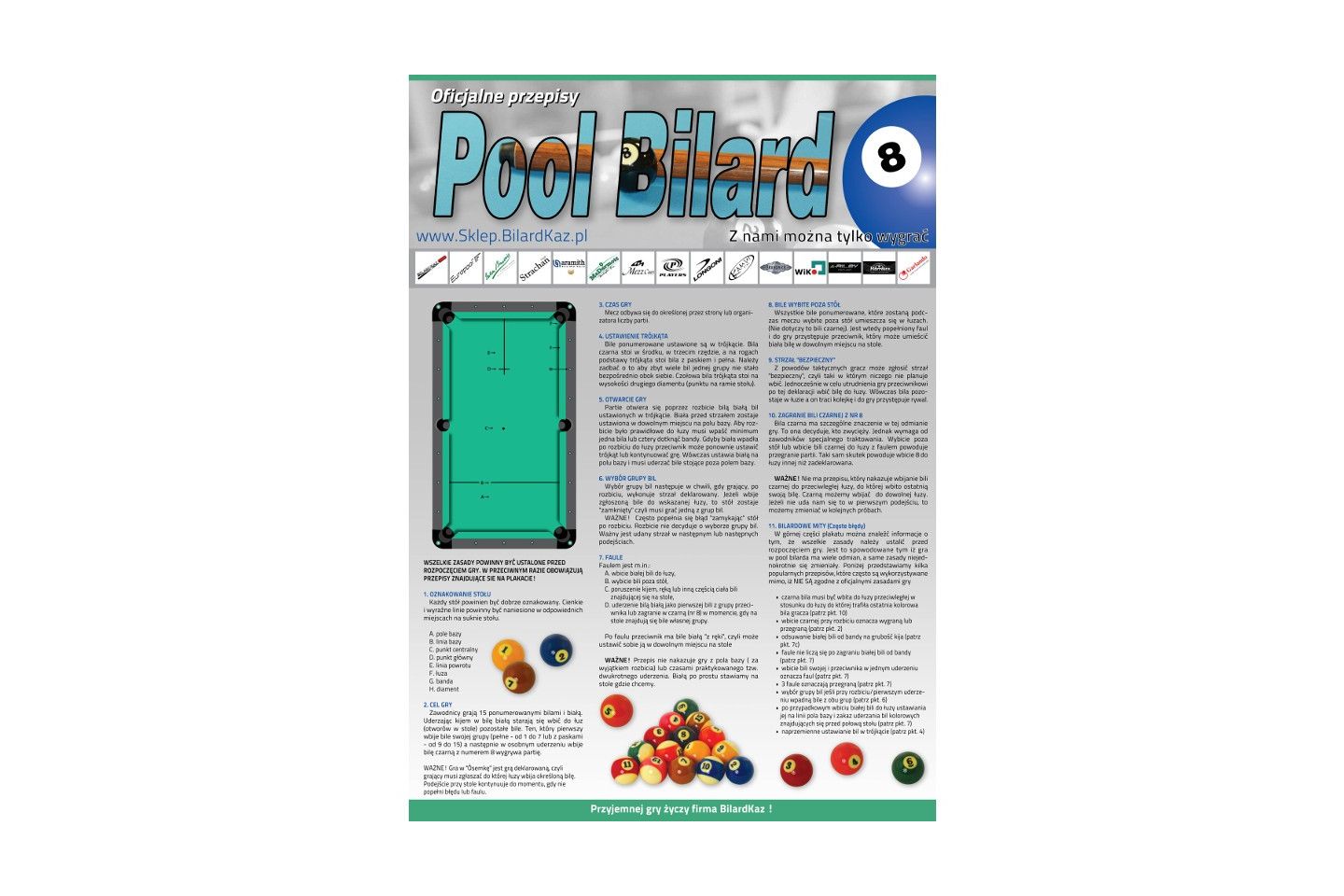 *GRATIS - Plakat dołączany jest do sukna bilardowego.