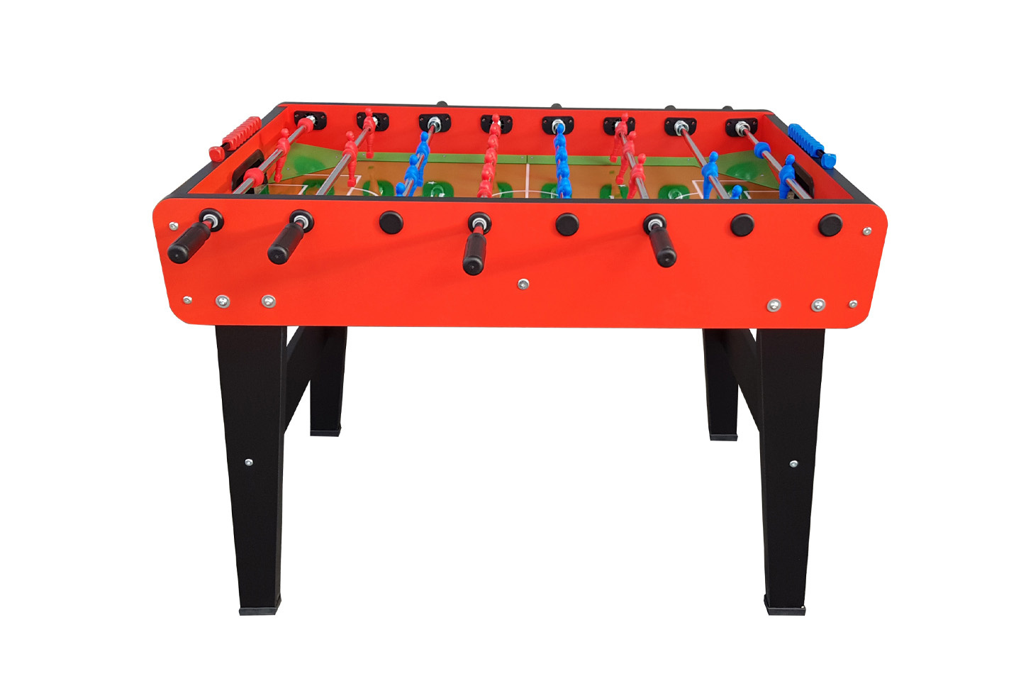 Stabilne drewniane nogi, wzmocnione poprzeczną belką, zapewniają odpowiednią wytrzymałość podczas gry. Drążki teleskopowe o średnicy 16 mm, wykonane z hartowanej stali pokrytej podwójną warstwą chromu, są bezpieczne w użytkowaniu i odporne na intensywne obciążenia. Figurki zawodników, odlewane bezpośrednio na drążkach, cechują się wyjątkową trwałością, co zapobiega ich przemieszczeniom czy pęknięciom, nawet podczas dynamicznej rozgrywki.