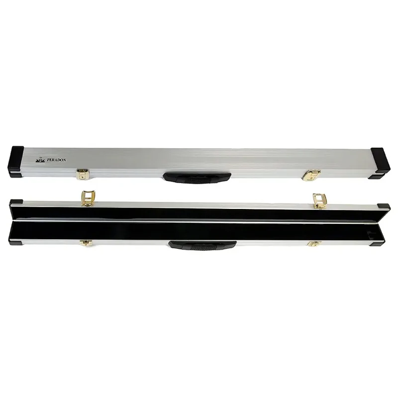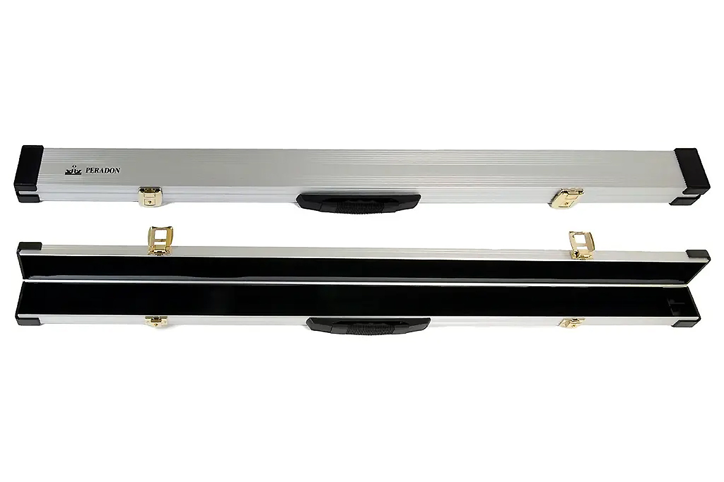 Walizka Peradon Aluminium 3/4 srebrna to solidna i elegancka ochrona dla Twojego kija snookerowego. Dzięki wytrzymałej aluminiowej konstrukcji oraz wbudowanemu zawiasowi będącemu integralną częścią korpusu, walizka gwarantuje maksymalną trwałość i odporność na uszkodzenia mechaniczne. Chromowane zatrzaski zamykane na klucz (w zestawie dwa klucze) zwiększają bezpieczeństwo transportowanego sprzętu. Wnętrze zostało wyścielone czarną flokowaną pianką, która stabilizuje kij i akcesoria, chroniąc je przed przesuwaniem i zarysowaniami.