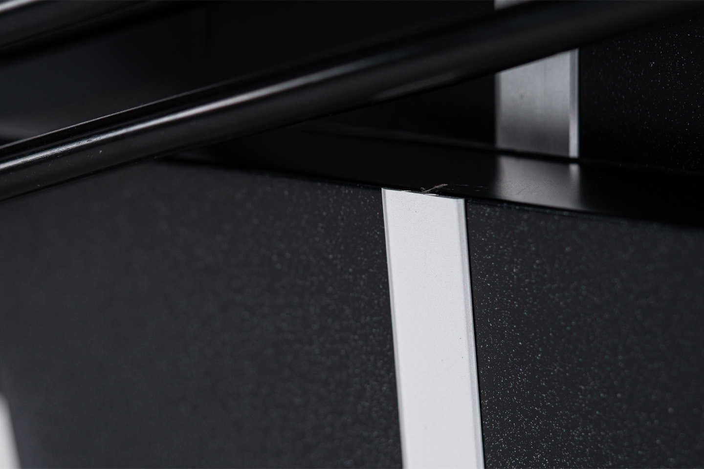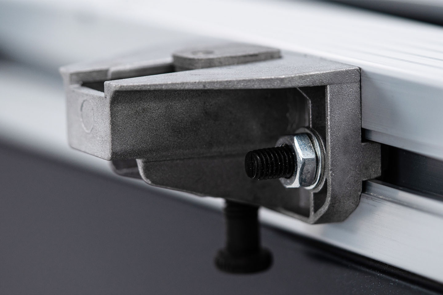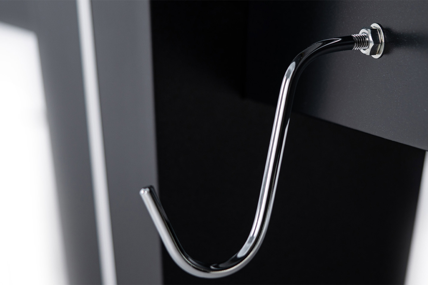 Nogi przypominają odwróconą szyjkę butelki, zmodyfikowaną przez inżynierów, mającą mocny, solidny wygląd, idealnie komponujący się z perfekcją tego stołu. Ich konstrukcja perfekcyjnie rozkłada masę stołu, zapewniając jego stabilność, natomiast opatentowana przez firmę Rasson technologia poziomowania zapewnia możliwość precyzyjnej regulacji.