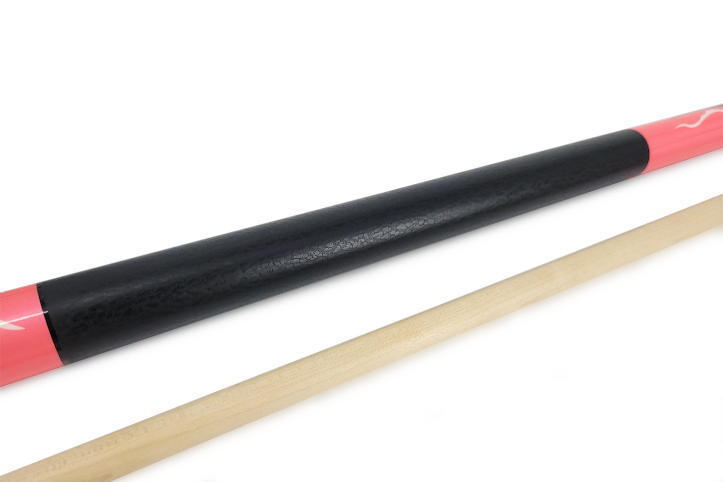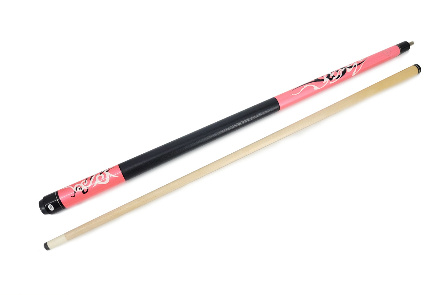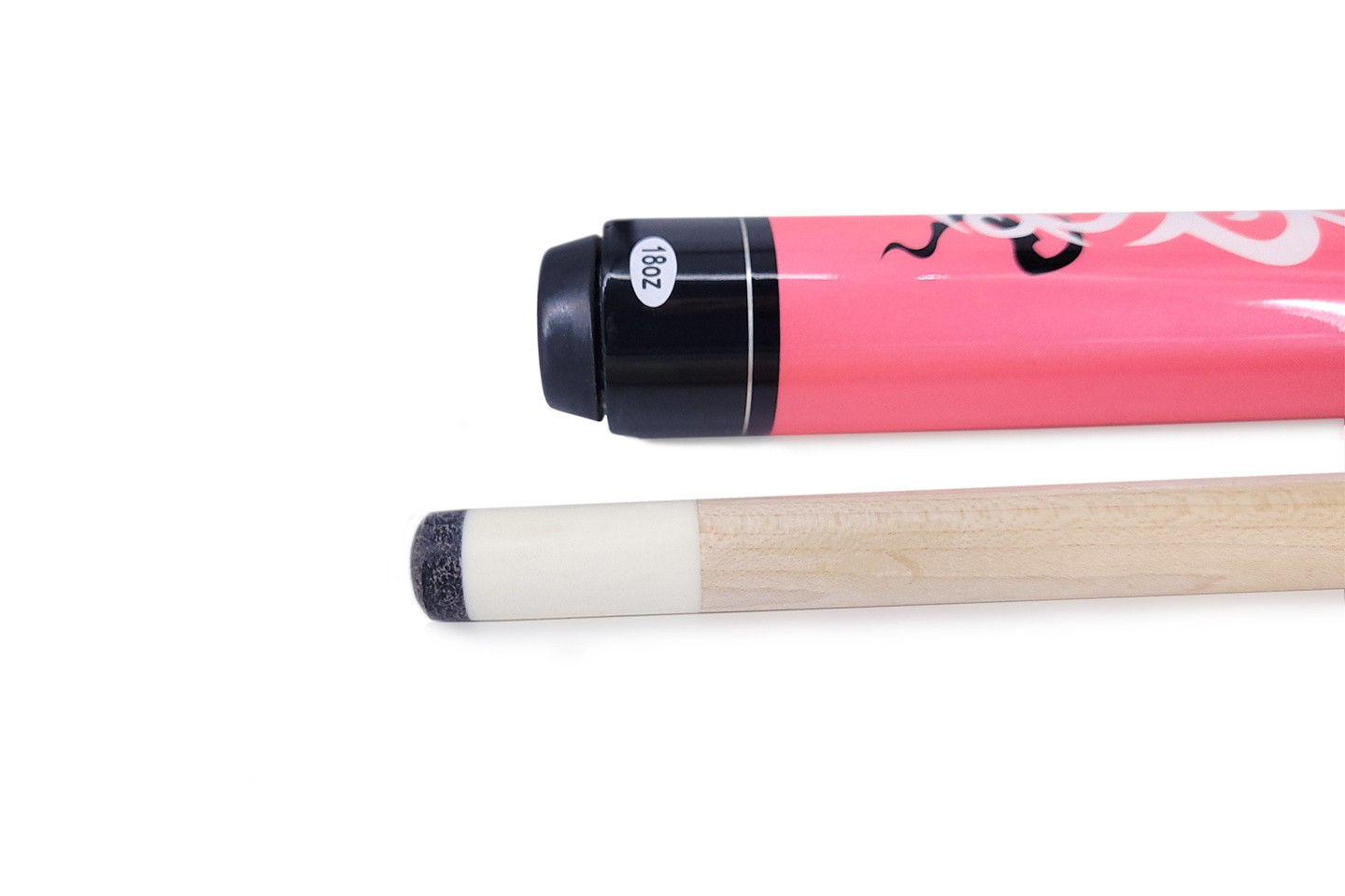 Rękojeść pokryta jest czarnym lakierem z subtelnym efektem spękania, co zapewnia pewny chwyt i atrakcyjny wygląd. Górna część kija przyciąga wzrok perłowym lakierem w odcieniu różowym, wzbogaconym o eleganckie zdobienia, które nadają całości nowoczesny i dynamiczny charakter.