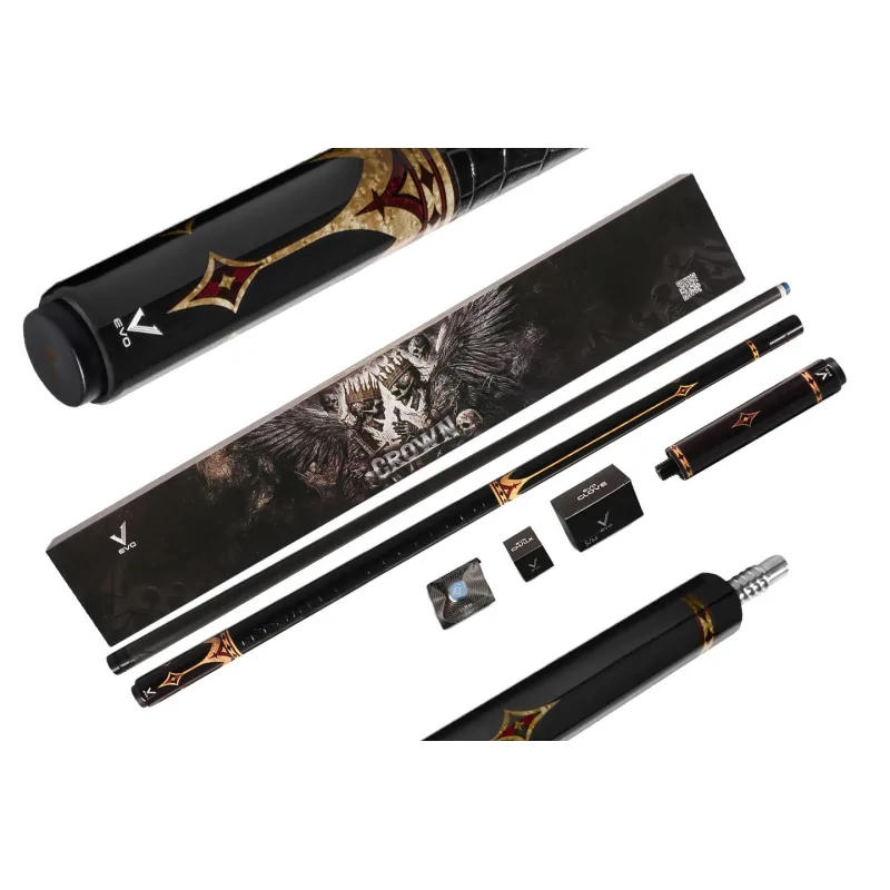 EVO Crown Royal Black MAXBING Edition to kij dla graczy, którzy nie gonią za uwagą – to ona przychodzi do nich. Zainspirowany formą królewskiej korony, wyposażony w zaawansowany rdzeń z włókna węglowego i szklanego, oferuje niezrównaną precyzję, wyważenie oraz powtarzalność uderzeń. Nie tylko prezentuje się ekskluzywnie – gra nim plasuje się na poziomie mistrzowskim.