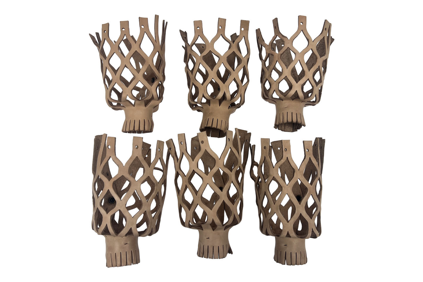 Koszyki skórzane z ozdobnymi frędzlami i narożnikami – komplet 6 szt.