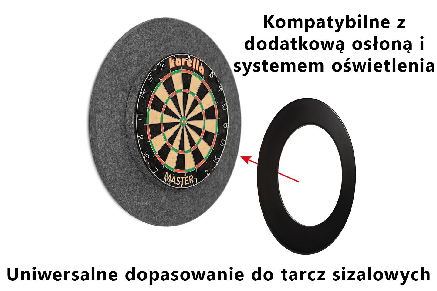 Karella Surround Quadro to czteroczęściowy ring ochronny wykonany z wysokiej jakości pianki EVA, zaprojektowany z myślą o skutecznej ochronie ścian i lotek przed skutkami chybionych rzutów. Dzięki matowej powierzchni, konstrukcja minimalizuje refleksy świetlne, zachowując estetyczny i profesjonalny wygląd.