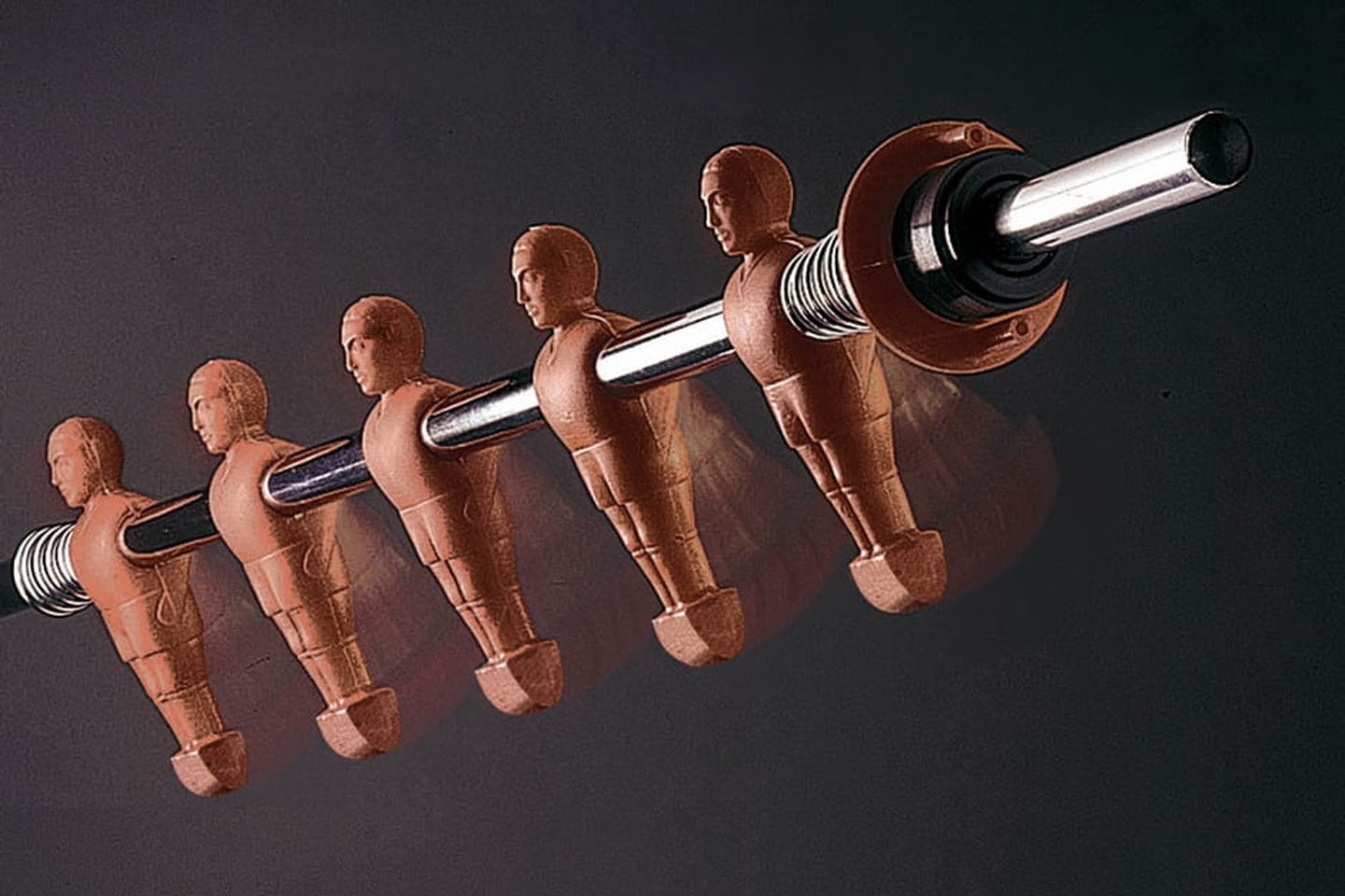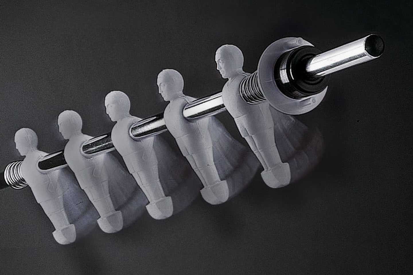 Figurki piłkarzyków wykonane są ze specjalnego tworzywa (moplenu) i odlane bezpośrednio na drążkach, co eliminuje konieczność użycia wkrętów. Dzięki temu figurki pozostają nieruchome i odporne na pęknięcia, niezależnie od siły uderzenia. |