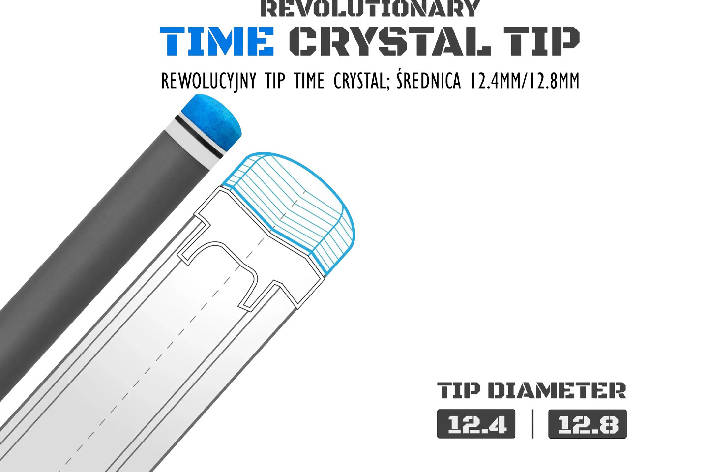 - Łatwość kontroli: Tip TIME Crystal w połączeniu z taperem Pro i technologią niskiej defleksji gwarantuje płynne rotacje, wyjątkową stabilność oraz pełną kontrolę nad każdą bilą.